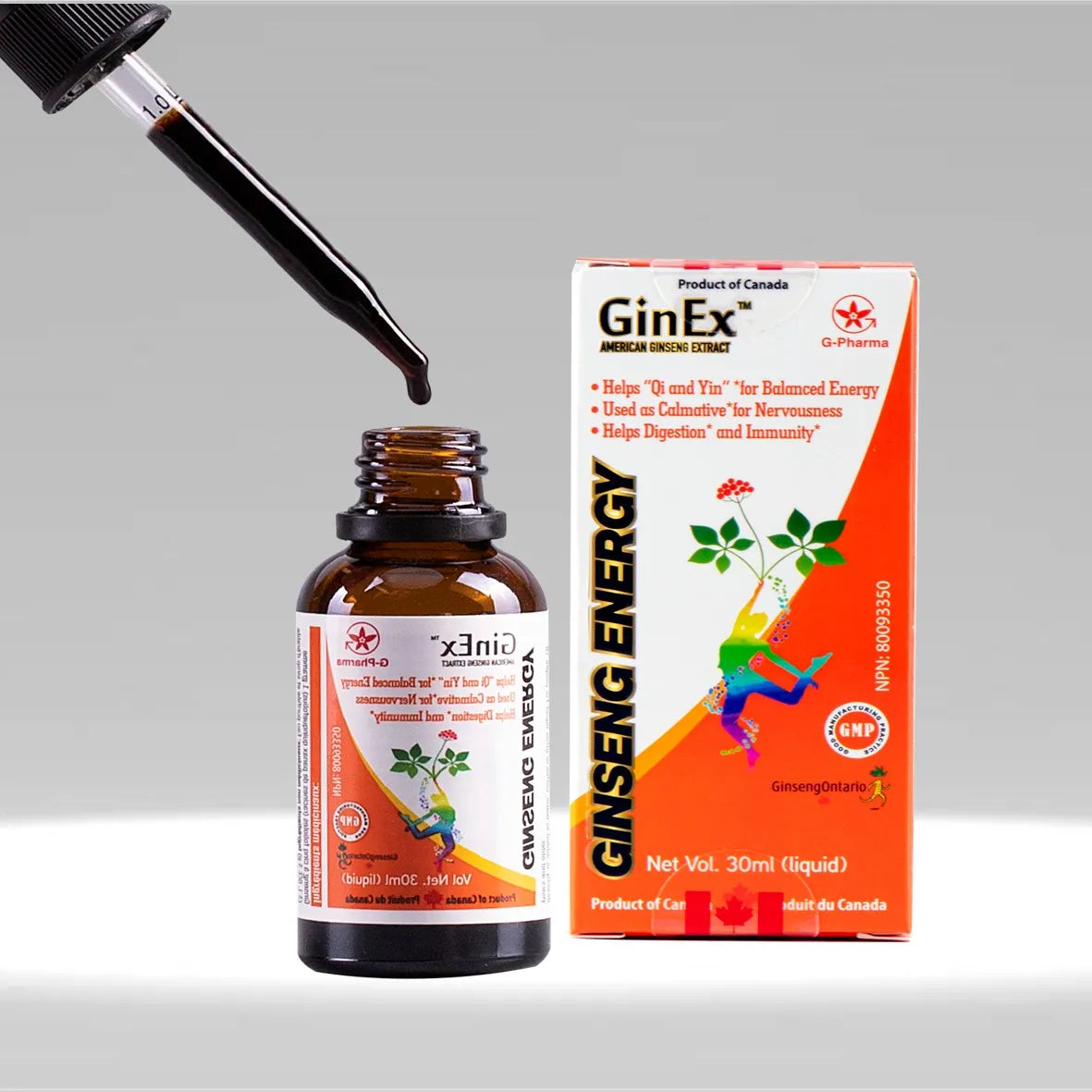 Product Name GinEx® 30ml dropper, American Ginseng Extract Concentrate