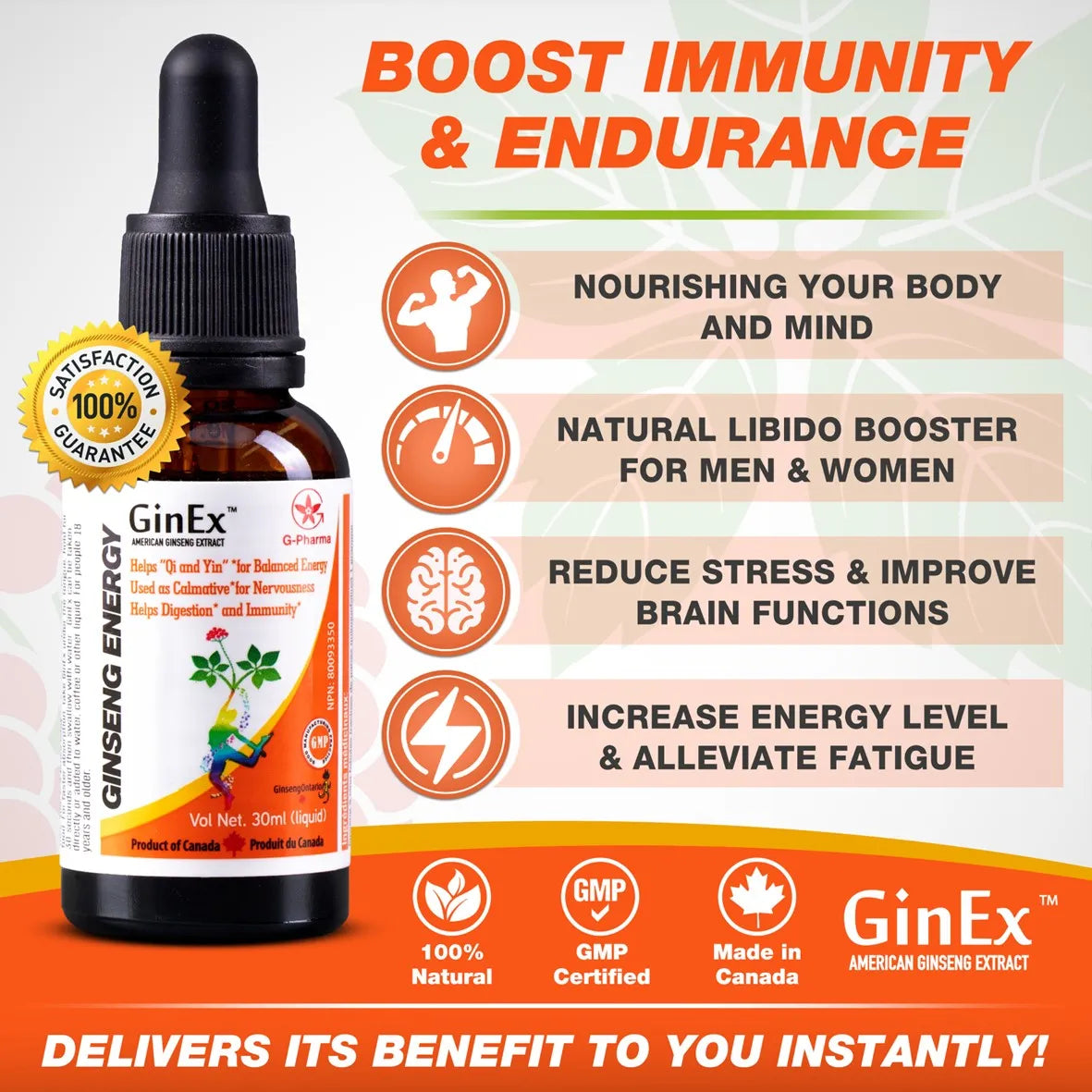 • THE POWER OF GinEx® – GinEx® is pure, potent American ginseng extract concentrate made of clean, premium source of 100% Ontario ginseng roots. Providing high concentration of medicinal ingredients, very high absorption rate and optimized dosage, GinEx gives you the benefits of increased bioavailability, the critical element for the efficacy of American Ginseng supplements.